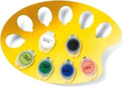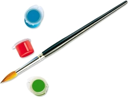 De set bevat een sjabloon met genummerde vakken, acrylverf, een dubbelzijdige kwast en een glanzende lak voor de eindafwerking.