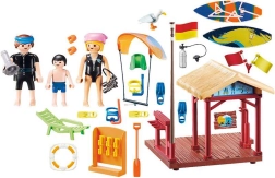 De set bevat 73 kleurrijke blokken, figuren en accessoires voor realistische watersporten.
