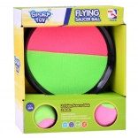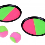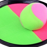 Lichte en leuke set om te gooien en vangen met een klittenbandoppervlak voor actief buitenspel voor kinderen en volwassenen. Twee bats met een handige handriem en twee zachte ballen in neonkleuren zorgen voor gemakkelijk vangen, ontwikkelen de oog-handcoördinatie en snelle reflexen – ideaal voor in de tuin, op het strand en in het park.