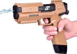 Dit moderne waterpistool gebruikt een elektrisch mechanisme – je drukt de trekker in en de motor start onmiddellijk een constante waterstraal. De duurzame kunststof constructie en ergonomische handgreep met antisliptextuur garanderen een zekere grip en eenvoudige bediening, ook voor jongere kinderen.