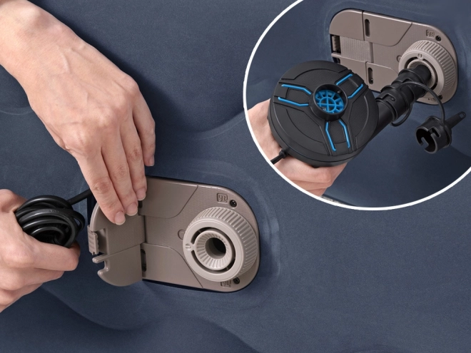 De geïntegreerde AC-pomp 220–240 V pompt het matras in ongeveer 5 minuten op en laat het ook weer leeglopen. Een hand-/vootpomp kan worden gebruikt als er geen stroom beschikbaar is.