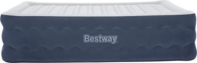 Tweepersoons opblaasbaar matras BESTWAY met Tritech-technologie biedt stabiele ondersteuning, een zachte, velours-achtige toplaag en een ingebouwde elektrische pomp voor snel oppompen in ca. 5 minuten. Ideaal als comfortabel logeerbed en voor op reis.