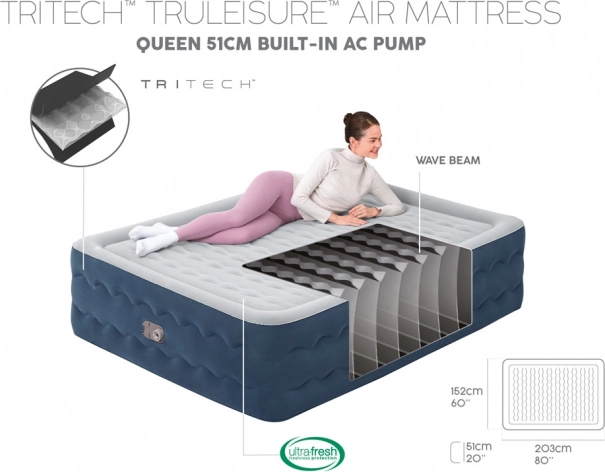 Bestway opblaasbaar matras Queen Tritech met ingebouwde pomp 203 × 152 × 51 cm