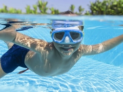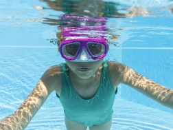 Met het masker kan het kind vrij duiken, in het water spetteren en tegelijkertijd de onderwaterwereld observeren.
