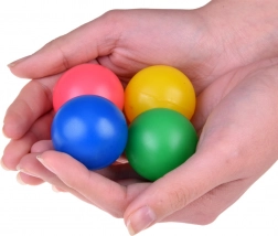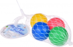 - Set van 4 stuks: rood, geel, blauw en groen balletje in een praktisch net.