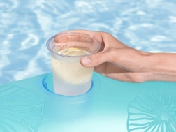 De opblaasbare ring met een prachtig koraalrifmotief zal je verrassen met zijn design en kleuren, en trekt de aandacht van alle liefhebbers van ontspanning op het water. Twee stevige handgrepen maken het in- en uitstappen eenvoudiger, terwijl de ingebouwde bekerhouder het mogelijk maakt om comfortabel van een verfrissend drankje te genieten zonder je relaxmoment te onderbreken.
