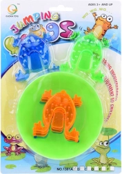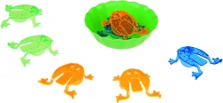 Kleurige plastic kikkers schiet je eenvoudig met je vinger af en stuur je rechtstreeks de kom in. Ideaal voor snelle wedstrijdjes en behendigheidstraining.