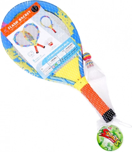 De verpakking bevat twee kleurrijke rackets met comfortabele schuimrubberen handgrepen die ervoor zorgen dat de rackets niet uit je handen glijden tijdens het spel. Het belangrijkste kenmerk is de LED-verlichting rondom de rackets (behalve de handgreep), waardoor ze goed zichtbaar zijn. Bovendien bieden ze drie verschillende modi: snel knipperen, langzaam knipperen en constant. Je hoeft alleen maar degene te kiezen die je het leukst vindt met een eenvoudige druk op de knop aan de onderkant van de handgreep.
