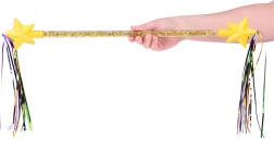 In het midden van de sterretjes zijn kraaltjes geplaatst die bij beweging een rammelend geluid maken, wat de oefening ritmisch maakt. Deze magische staf kan een geweldige start zijn van een sportieve carrière, waarmee kinderen hun flexibiliteit en elegantie kunnen ontdekken.