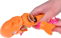 Dit compacte waterpistool in de vorm van een oranje haai is gemaakt van glad, prettig aanvoelend kunststof en is ideaal voor zomerse pret. Kinderen waarderen het speelse uiterlijk met vinnen, tandjes en het opvallende oog dat bij beweging vrolijk meedeint. Dankzij het transparante reservoir hebben kleine schutters altijd zicht op de resterende hoeveelheid water.