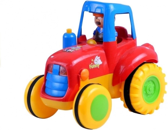 De tractor licht op tijdens het rijden en maakt vrolijke geluiden die de zintuigen prikkelen en kinderen geboeid houden.