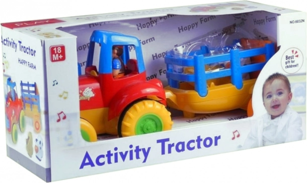 De tractor met aanhanger is ontworpen voor de allerkleinsten – dankzij de eenvoudige bediening, het kleurrijke design en de effecten is spelen leuk en boeiend. De achteraanhanger met te openen laadklep maakt het laden van de diertjes gemakkelijk, zodat kinderen eenvoudig hun eerste boerderij kunnen naspelen.