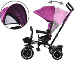 Deze multifunctionele driewieler combineert de voordelen van een kinderwagen, loopfiets en klassieke driewieler. Dankzij de draaibare zitting kun je je kind zowel naar de ouder toe als in de rijrichting vervoeren. Zachte bekleding, 5-puntsgordels en een afneembare veiligheidsbeugel zorgen voor maximaal comfort en veiligheid.