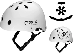 De MoMi MIMI-helm is ontworpen voor jonge sporters die betrouwbare bescherming nodig hebben tijdens dagelijkse avonturen. Hij combineert een slijtvaste ABS-buitenschaal met een interne EPS-schaal voor effectieve schokabsorptie, terwijl de zachte foam-pads het comfort verhogen, ook bij langer dragen.