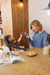 De eetstoel MoMi GOJO heeft ook een extra verkleinkussen voor een kleiner kindje.