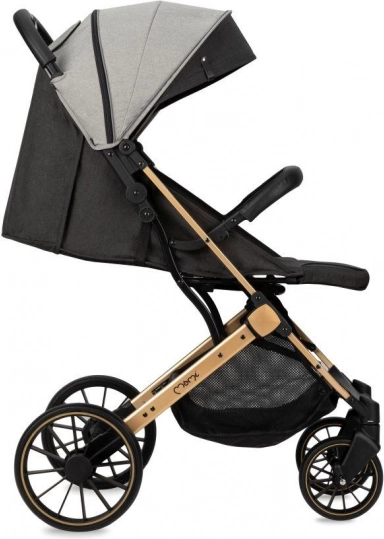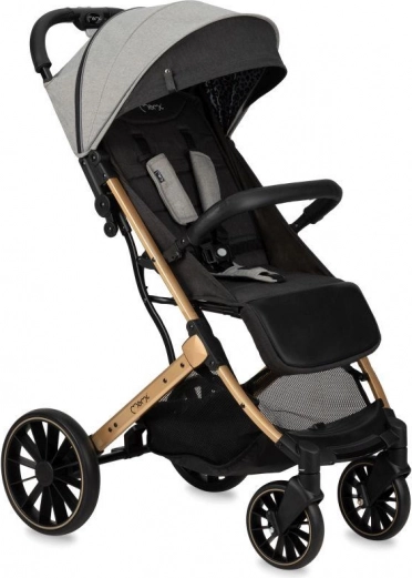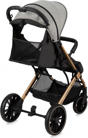 De kinderwagen heeft wendbare, lekbestendige wielen die comfort bieden. Dankzij het grote formaat – 10" – zijn ze ideaal, zelfs in de meest veeleisende omstandigheden. De centrale rem van de MoMi ESTELLE DAKAR is zeer comfortabel in gebruik. Onder de kinderwagen bevindt zich een praktische, grote mand met een draagvermogen tot 2 kg.