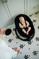 De MoMi Kenani Onyx is een moderne elektrische schommel voor het comfortabel kalmeren en bezighouden van je baby vanaf de geboorte. Het stabiele aluminium-stalen frame, de zachte pluche bekleding en het hoofdkussentje zorgen voor comfort, terwijl de 5-puntsgordel en antislipvoetjes de veiligheid waarborgen. Dankzij Bluetooth speel je eenvoudig favoriete liedjes vanaf je telefoon af; het overzichtelijke LCD‑display en de afstandsbediening maken dagelijks gebruik nog makkelijker.