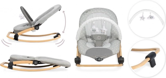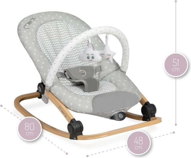 De MoMi Lumiwood ligstoel biedt de ideale omgeving voor ontspanning van uw kind. Dankzij de driepunts veiligheidsgordel en speciale kruisriem is uw kind altijd veilig. De ligstoel is voorzien van een sensorische unit die melodieën en vibraties genereert.