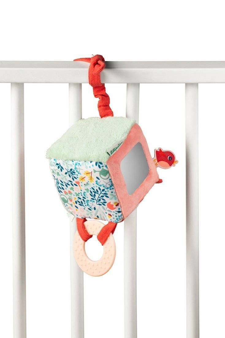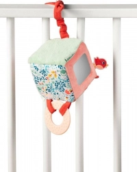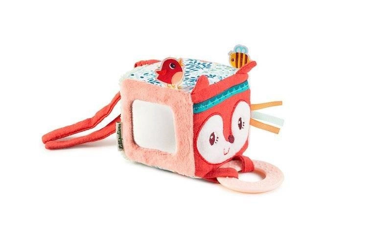 De Lilliputiens actieve kubus uit de Vosje Alice-collectie is een ideaal speels speeltje voor nieuwsgierige kleintjes. Gemaakt van verschillende materialen en texturen, bevat hij diverse interactieve elementen, waaronder een spiegeltje, rammelaar en een gekleurde bijtring.