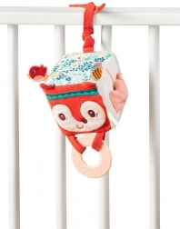 De kubus bevat een bijtring van EVA-materiaal die verlichting biedt bij het doorkomen van tandjes en de tastzin stimuleert.