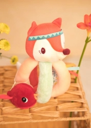 Schattige babyrammelaar van Lilliputiens in de vorm van vos Alice, die over een klein rood vogeltje waakt. Biedt een mix van texturen, een belletje, knisperend papier en een verborgen verrassing voor zintuiglijke ontwikkeling. Gemakkelijk vast te pakken door kleine handjes, superzacht en wasbaar op 30 °C.