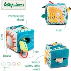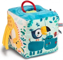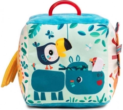 Ga op avontuur met de Jungleblok van het Belgische merk Lilliputiens. Deze zachte en interactieve speelgoedblok bevat: