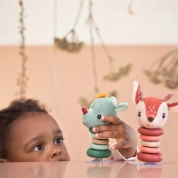 Hert Stella is een ongelooflijk leuk speelgoed dat bij de kleinste aanraking gaat schommelen. Haar stoffen hoofd en gecertificeerde houten ringen garanderen veiligheid en kwaliteit. Geschikt voor kinderen vanaf 6 maanden, waardoor het de perfecte metgezel is voor de kleintjes.