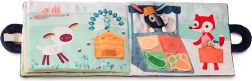 Het zachte activiteitenboekje met boerderijthema neemt kinderen mee door de dag van Ignace het ezeltje – van de boomgaard via de moestuin tot aan de markt. Op de pagina’s wachten afneembare accessoires met klittenband: een appel, courgette, wortel, aardappel, eitje, fles melk, plukje wol en geurende honing. Sommige elementen zitten verstopt in vakjes of achter flapjes, zodat kleine ontdekkers hun fijne motoriek, oog-handcoördinatie en logisch denken oefenen. Op de laatste pagina plaatsen kinderen alles correct op de markttafel volgens vorm en kleur.
