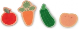 Oogst de appel, courgette, wortel en aardappel, haal het eitje, de melk, de wol en de honing op. Afneembare elementen met klittenband en verborgen vakjes nodigen uit tot ontdekken en bevorderen de fijne motoriek.