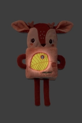 Dit schattige knuffel-boekje met hertje Stella in haar pootjes combineert een knuffelspeeltje met zintuiglijke ontdekkingen. Eén pootje dient als handgreep, het andere als klittenbandsluiting zodat het boekje netjes bij elkaar blijft. Op de pagina’s verschijnen geliefde diertjes van het merk, zoals de vos Alice en de draak Joe, en elke pagina verrast met een ander effect.