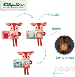 Interactief, knuffelig boekje met het hertje Stella van Lilliputiens – ideaal als eerste “lees”-ervaring voor baby’s vanaf 3 maanden. Combineert een pluche speeltje en een stoffen boekje met verrassingen op elke pagina: knisper, ramelaar, buigzaam spiegeltje en zelfs een element dat in het donker licht. Stimuleert zien, horen en voelen, helpt bij ontspanning en wekt liefde voor boeken.