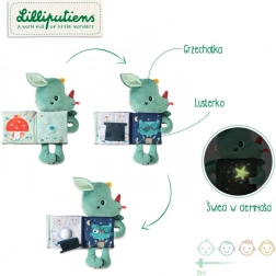Deze multifunctionele knuffel met boekje van Lilliputiens combineert een zachte pluchen speelgoedvriend en eerste leeservaring in één. Draakje Joe heeft opvallende details – vleugeltjes, oortjes, een schattig tongetje en een praktische klittenbandsluiting voor het boekje. Elke pagina verrast met een ander effect dat zicht, gehoor en tast ontwikkelt.
