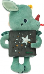 Een schattige knuffel met geïntegreerd stoffen boekje biedt kinderen vanaf 3 maanden veel prikkels en plezier. Het figuurtje draak Joe houdt een zacht boekje vast met bosdiertjes en magische motieven. De pagina’s knisperen, ratelen, hebben een buigzame spiegel en het toverstokje op de kaft licht zelfs op in het donker. Hoogwaardige afwerking, veilige materialen en stimulatie van de zintuiglijke ontwikkeling maken het tot een geweldig cadeau en een fijne metgezel bij het inslapen.