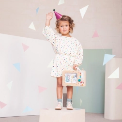 De box is gemaakt van beukenmultiplex en hoogwaardig plastic met FSC-certificering, heeft een afwasbaar oppervlak en een praktische handgreep voor thuis en onderweg. Dankzij de doordachte afwerking is hij veilig en duurzaam voor dagelijks gebruik.