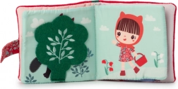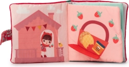 Vermaak je kleintjes met een prachtig textielboekje geïnspireerd op het verhaal van Roodkapje, uitgerust met een bijtring voor verlichting bij doorkomende tandjes.