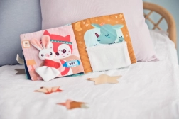 Het boekje is gemaakt van hoogwaardige, aangenaam aanvoelende materialen en is makkelijk te onderhouden – was het op een fijn wasprogramma. Dankzij het compacte formaat neem je het overal mee naartoe – op reis, in de buggy of in de kinderkamer.