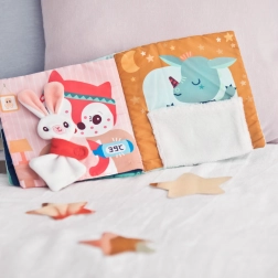Textiel activiteitenboekje met draakje Joe is ideaal voor kinderen vanaf 12 maanden. Kinderen maken kennis met verhalen over vriendschap en empathie, ontdekken interactieve elementen en oefenen hun fijne motoriek. De zachte materialen zijn prettig aan te raken en het boekje kan gewassen worden op 30 °C – een praktische en veilige keuze voor dagelijks spelen.