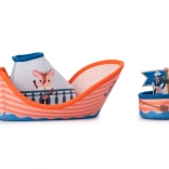 Ga op een fantasierijke vaartocht met de dapperste leeuw Jack en zijn bemanning. Het kleurrijke piratenschip van zacht neopreen is ontworpen om comfortabel in kleine handjes te liggen en biedt veilig speelplezier in bad en bij het zwembad. Het bovendek met ezeltje Ignace kan eenvoudig worden losgemaakt – zo krijgen kinderen één groter en één kleiner vaartuig voor gevarieerd spel en het stimuleren van de verbeelding.