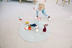 Dit textiele bowling-spel ontwikkelt de fijne motoriek (grijpen, gooien), stimuleert kruipen en klimmen en leert kinderen oorzaak–gevolg. Dankzij de zachte materialen is spelen veilig en stil – ideaal voor de kinderkamer en de woonkamer. Een geweldig cadeau voor kleine ontdekkers.