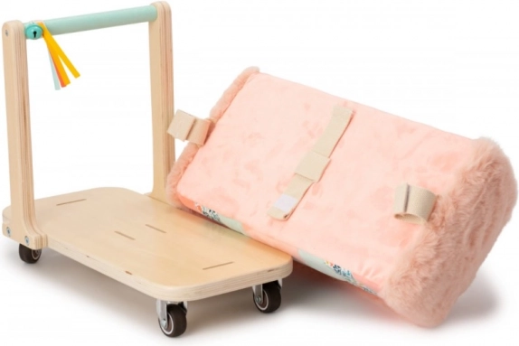 De 360° draaibare voorwielen maken draaien op kleine oppervlakken eenvoudig, terwijl de vaste achterwielen de richting behouden. De praktische bel, afneembaar tasje en het afneembaar te reinigen oppervlak maken dit loopvoertuig ideaal voor dagelijks speelplezier en het trainen van motoriek.