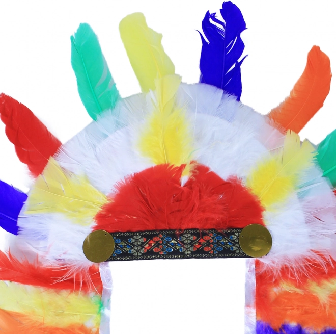 Deze kleurrijke Indiaanse hoofdband geeft je kostuum een authentieke én speelse uitstraling. Hij combineert multicolor veren in tinten rood, blauw, groen en geel met een comfortabele band die goed op het hoofd blijft zitten. Ideaal voor carnaval, schooloptredens, themafeesten en fotoshoots.