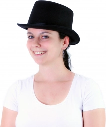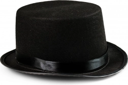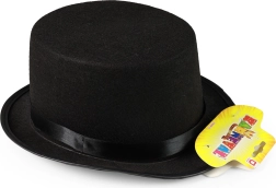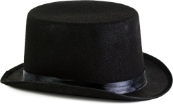 Zwarte hoge hoed met glad satijnen lint, ideaal voor formele gelegenheden.