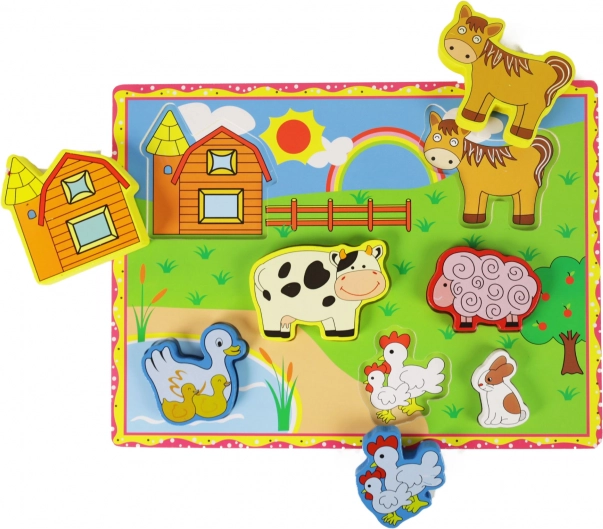 De houten inlegpuzzel met boerderijdieren is een geweldig hulpmiddel voor de ontwikkeling van de motorische vaardigheden van je kind. Dankzij dit spel leren kinderen vormen en dieren herkennen. Bovendien: