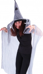 Perfecte set voor halloween of carnaval! Heksenmantel in grijze kleur met een hoed die je zeker zal laten opvallen!