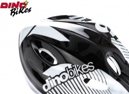 Kinderfietshelm Dino Bikes in een zwart-wit-zilveren combinatie zorgt voor maximale veiligheid en comfort tijdens het fietsen. Het is lichtgewicht, weegt slechts 220 g en bevat 5 ventilatieopeningen voor optimale luchttoevoer.
