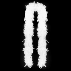 Geef je look een vleugje glamoureuze elegantie. Deze witte veren boa is licht, zacht aanvoelend en laat zich eenvoudig combineren met avondjurken en carnavalskostuums. Dankzij de lengte van ca. 180 cm draag je hem comfortabel over de schouders of om de nek.