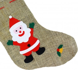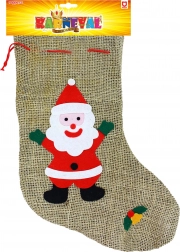 Traditionele Sint-sok van juten zakdoek met een praktische ophanglus en decoratieve print. In de ruime sok past veel lekkers en kleine cadeautjes. Ideaal voor Sinterklaas en Kerst, veilig voor kinderen vanaf 3 jaar, formaat 38 cm.