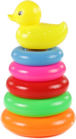Kleurrijke kinderpiramide met eendje is ontworpen om urenlang speelplezier te bieden en tegelijkertijd belangrijke vaardigheden te ontwikkelen. Dit speelgoed is bedoeld voor kinderen vanaf 12 maanden en is een uitstekend hulpmiddel voor het trainen van hand-oogcoördinatie en kleurherkenning.