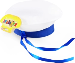 Geef je kind een stijlvolle accessoire in maritieme stijl. Deze pet valt op door het satijnen lint en de opvallende witte opdruk op het voorhoofd, wat de speelse en toch elegante uitstraling benadrukt. Perfect voor themafeesten, verkleedpartijen, fotoshoots en casual zomers gebruik.