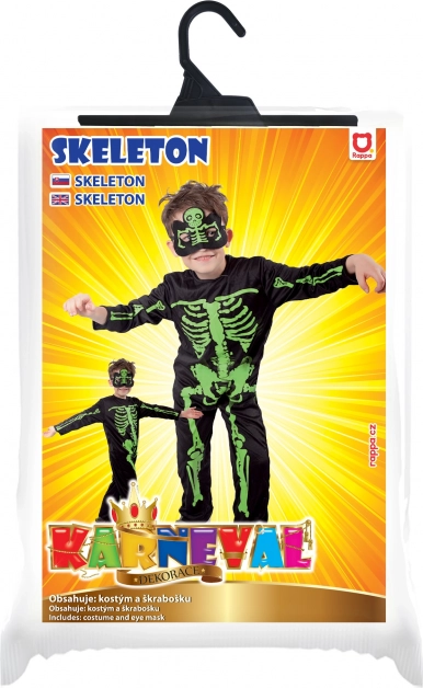 In de verpakking vind je alles wat nodig is: een overall voor het hele lichaam en een masker met skeletmotief voor een perfect afgestemde look. Een uitstekende keuze voor Halloween, carnaval, schooloptredens en verkleedpartijen thuis.